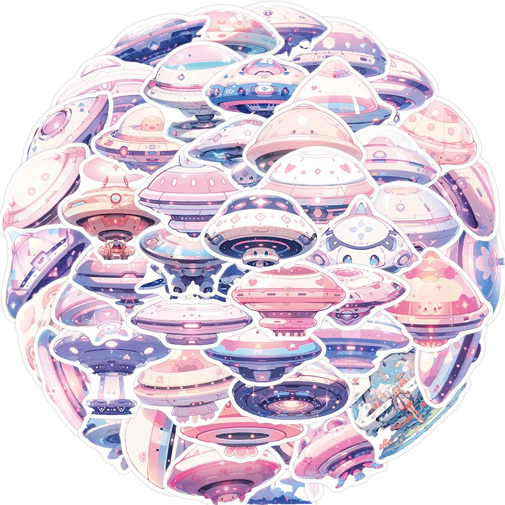 UFO 未確認飛行物体 空飛ぶ円盤 エイリアン 宇宙人 異星人 火星人 かわいい シール ステッカー50枚S