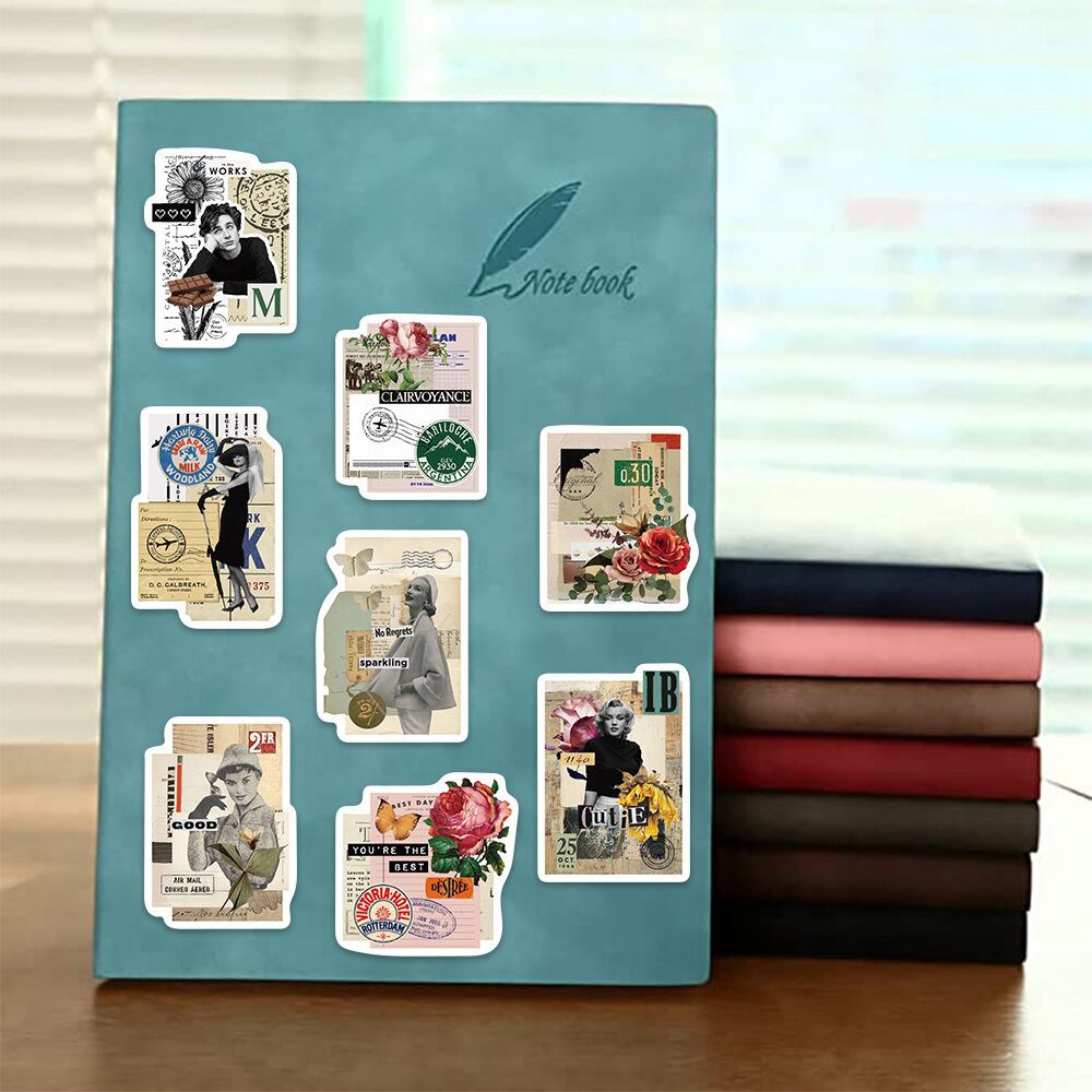 レトロ 古紙風 花 美人 アメリカン雑貨 新聞風 ハガキ 貼付用 シール ステッカー50枚S