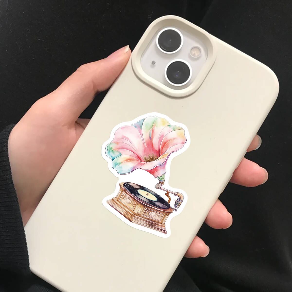 蓄音機 蓄音器 音楽 レコード ミュージック 音楽プレーヤー シール ステッカー50枚S