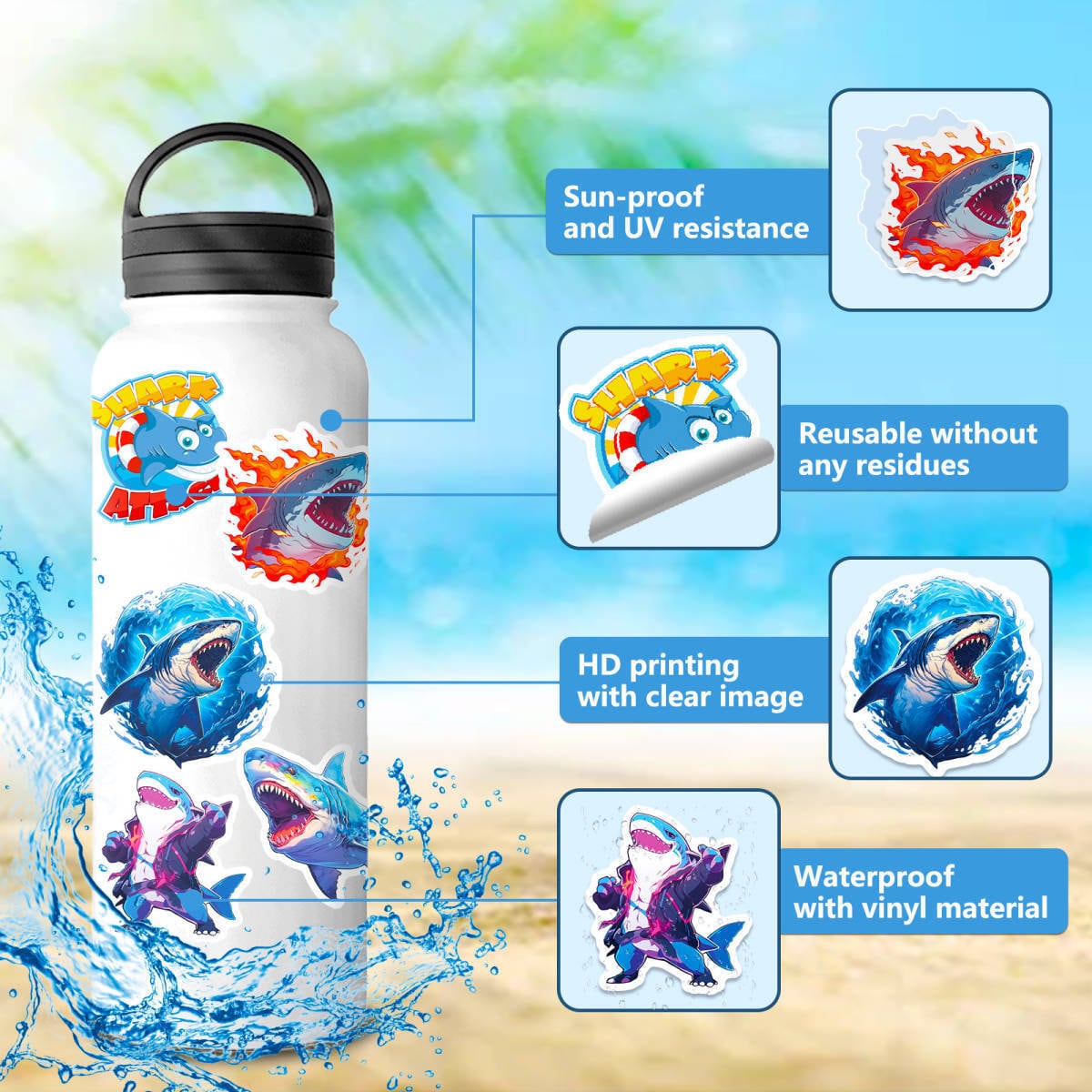サメ ホホジロザメ サメ柄 鮫 人喰いサメ 海洋生物 水族館 幼稚園 保育園 弁当箱 水筒 私物の目印 シール ステッカー50枚BPA