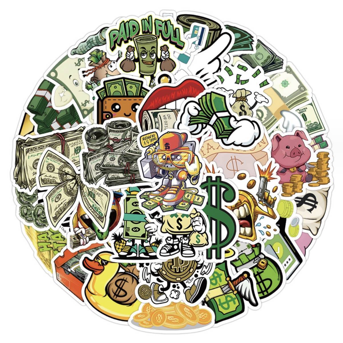 ドル ドル束 USドル お金 アメリカ通貨 株 投資 シール ステッカー50枚MM
